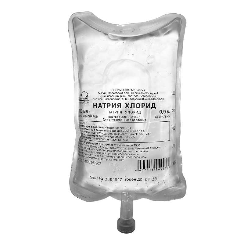 Изотонический раствор: дегидратация различного генеза. Для поддержания объема плазмы крови во время и после операций. В качестве растворителя для различных препаратов.