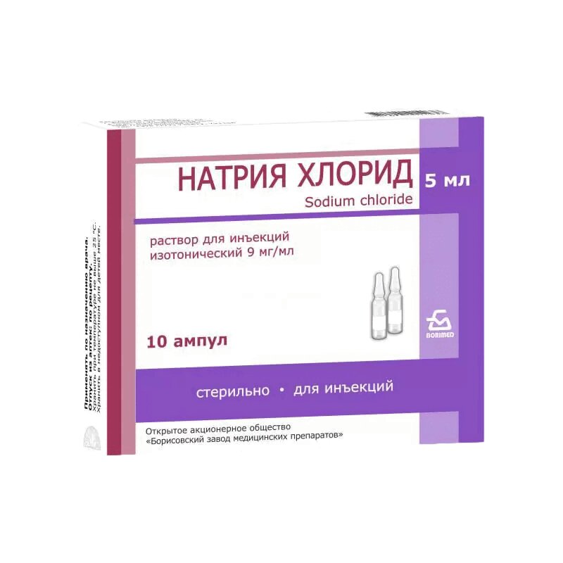 Натрия хлорид р-ль д/приг.лек.форм д/ин.9 мг/ мл амп.5 мл 10 шт