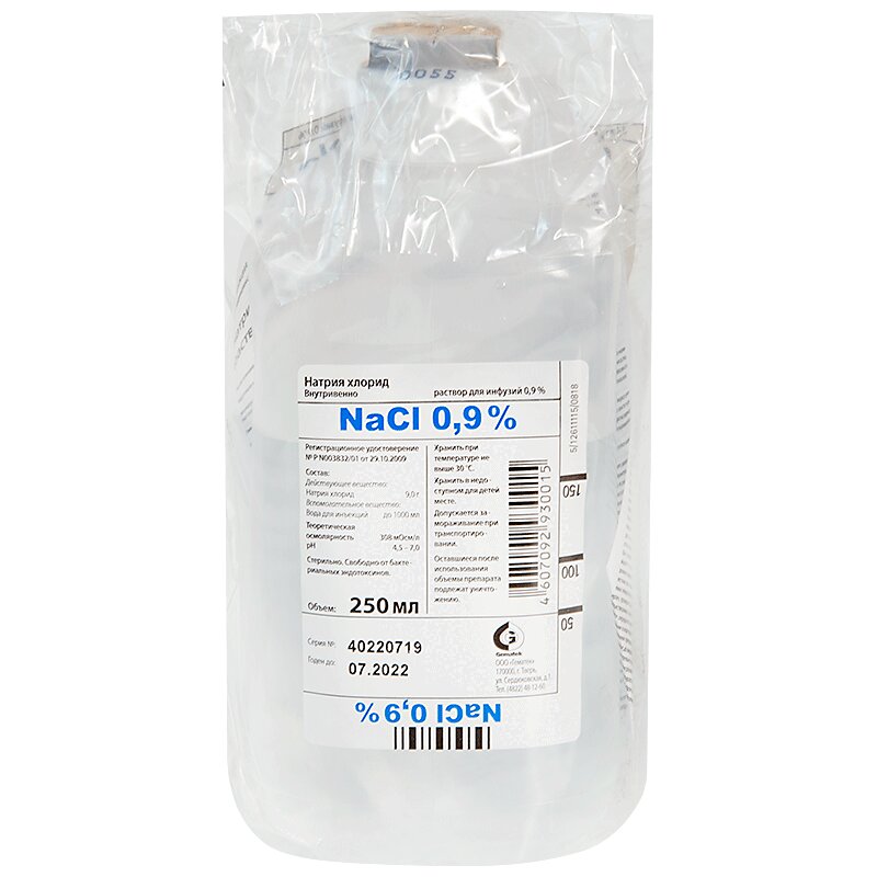 Инструкция по применению Натрия хлорид 0,9% раствор для инфузий 250 мл