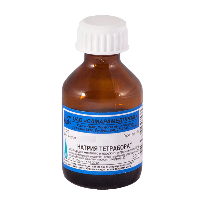 Инструкция по применению Натрия тетраборат 20% раствор для местного и наружного применения 30 г