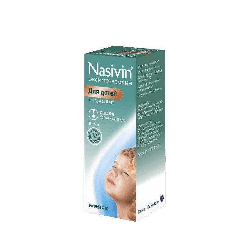 Инструкция по применению Називин для детей 1-6 лет 0,025% капли назальные 10 мл