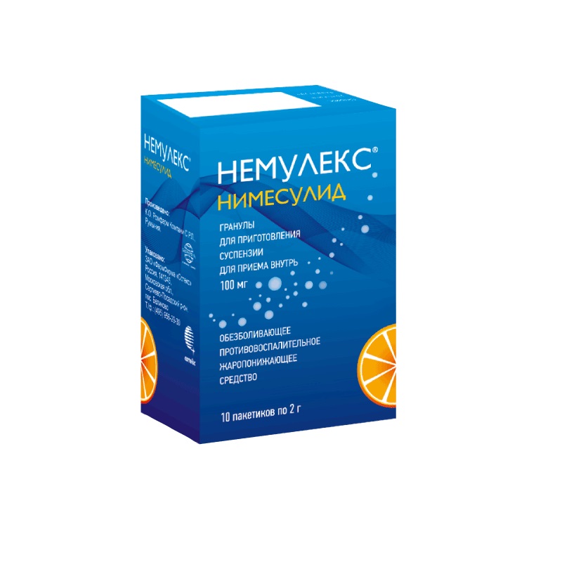 Цены на Немулекс 100 мг гранулы для приготовления суспензии в пакетиках 2 г 10 шт в аптеках Москвы