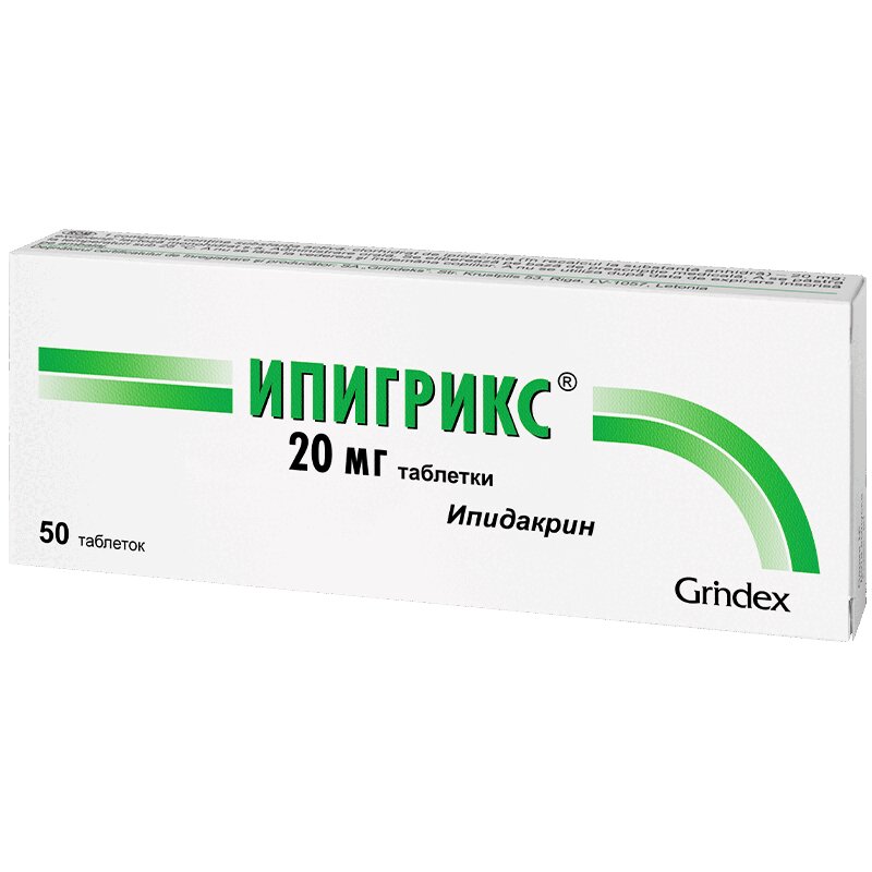 | ипидакрина гидрохлорид (в форме моногидрата) | 20 мг |