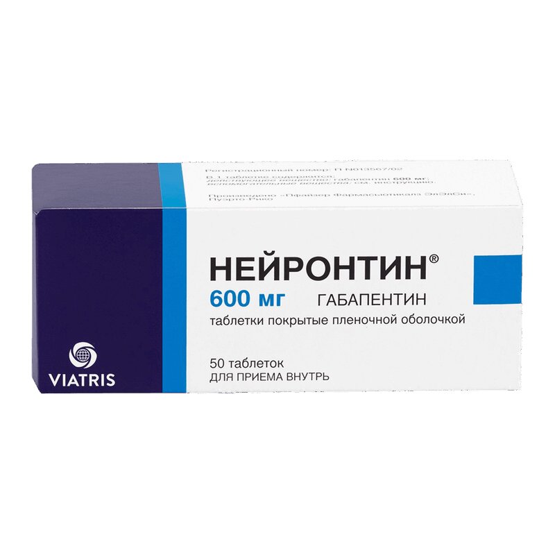 Нейронтин таблетки, покрытые пленочной оболочкой 600 мг 50 шт