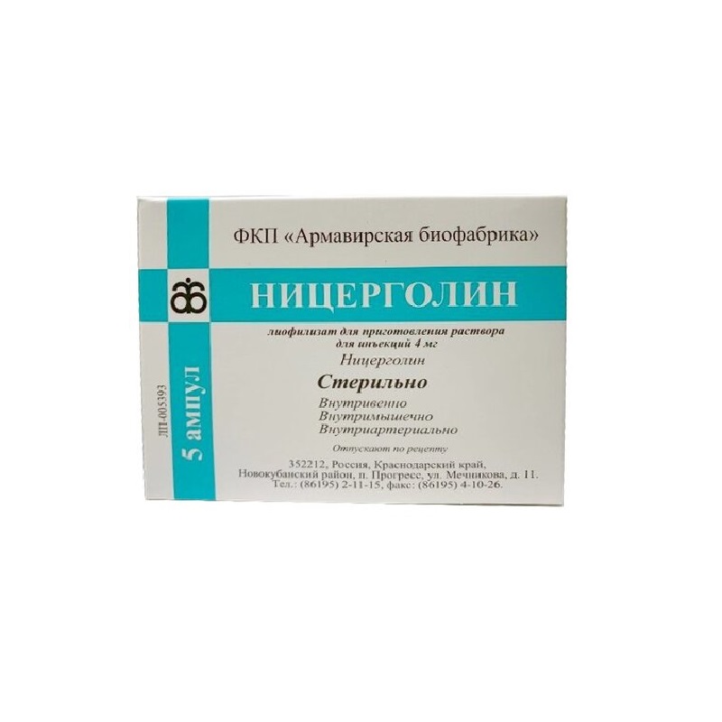 Инструкция по применению Ницерголин 4 мг лиофилизат для приготовления раствора для инъекций 5 шт