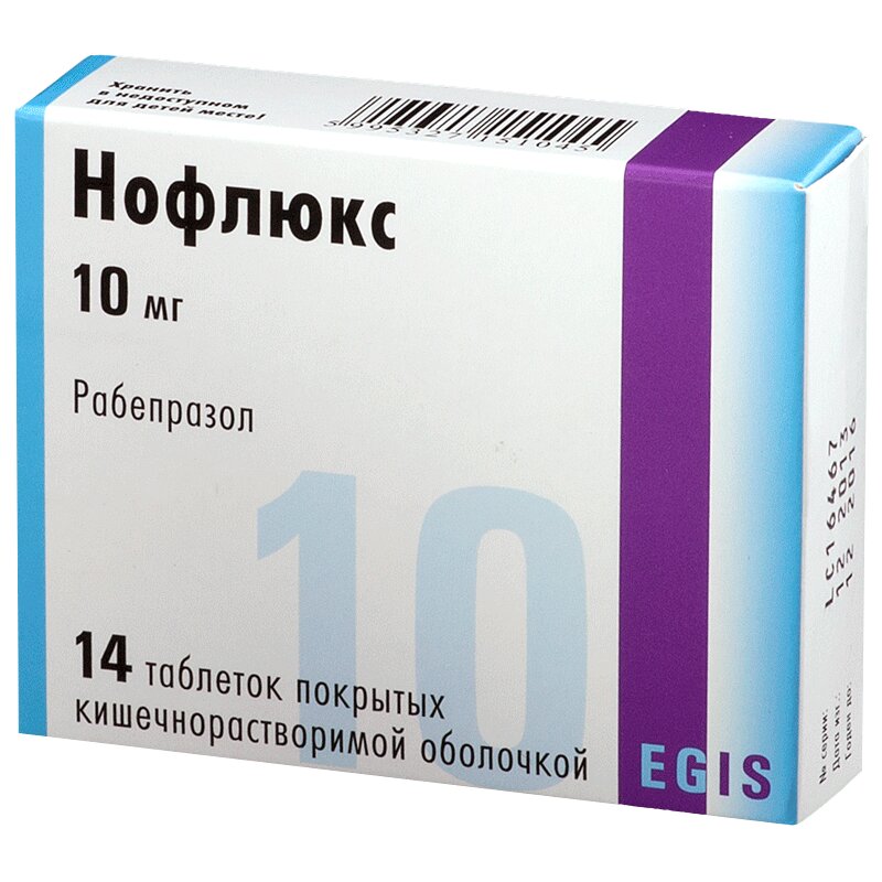 Нофлюкс таблетки, покрытые кишечнорастворимой оболочкой 10 мг 14 шт