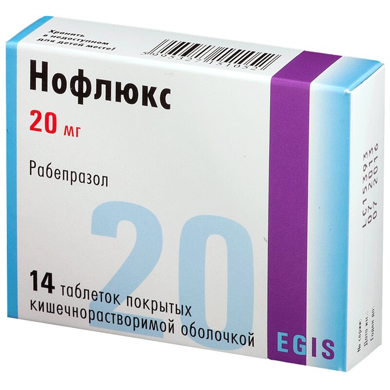 Нофлюкс таблетки, покрытые кишечнорастворимой оболочкой 20 мг 14 шт