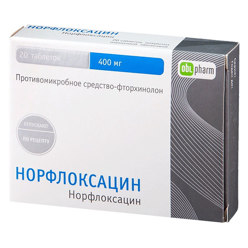 Норфлоксацин 400 мг таблетки покрытые пленочной оболочкой 20 шт ФП Оболенское