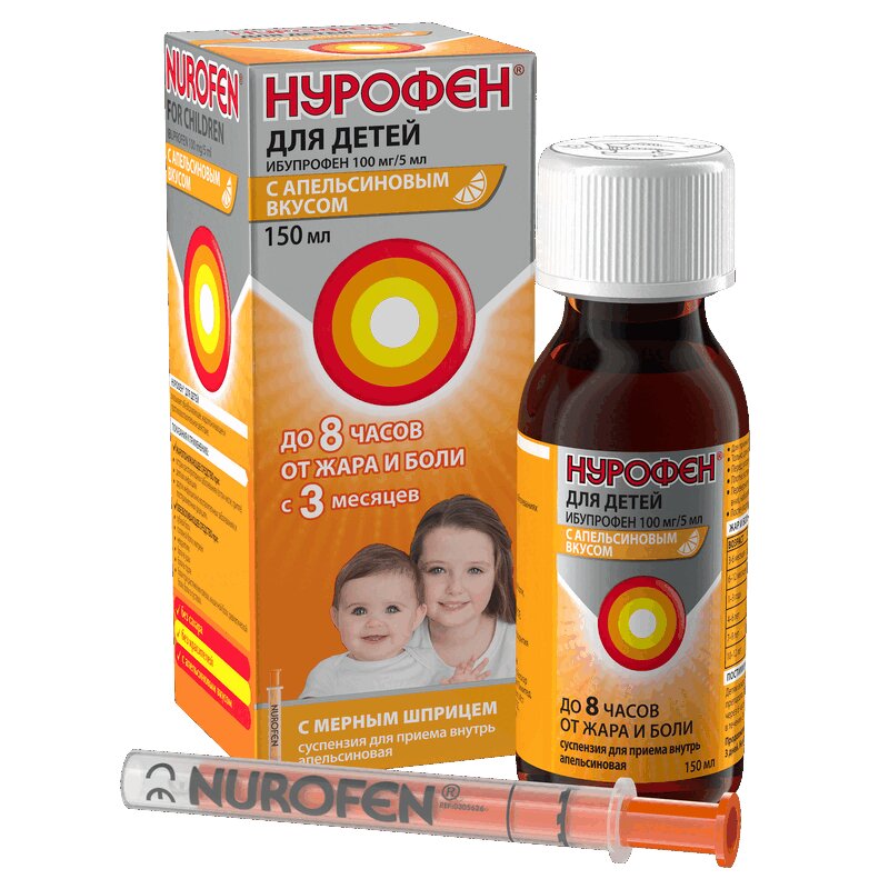 Нурофен для детей 100 мг/5 мл суспензия для приема внутрь с апельсином 150 мл 1 шт