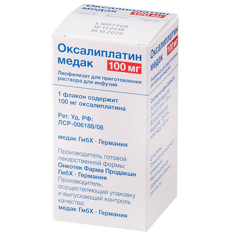 Оксалиплатин медак 100 мг лиофилизат для приготовления раствора для инфузий 1 шт