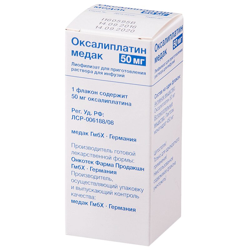 Оксалиплатин медак 50 мг лиофилизат для приготовления раствора для инфузий 1 шт