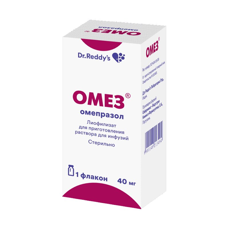 Омез 40 мг лиофилизат для приготовления раствора для инфузий 1 шт