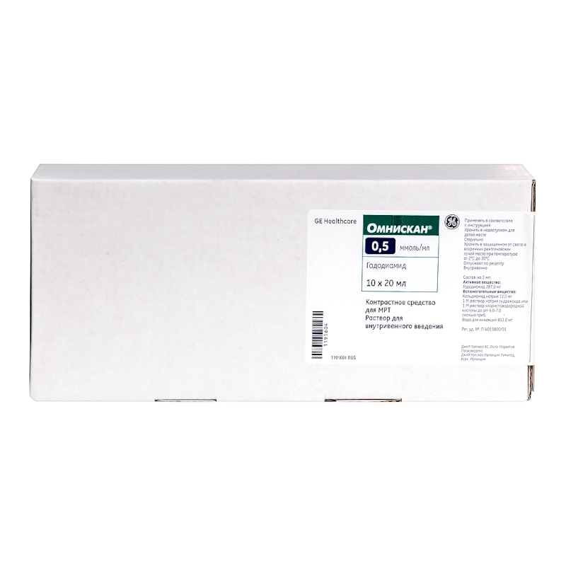 Инструкция по применению Омнискан 0,5 ммоль/мл раствор для инъекций 20 мл 10 шт