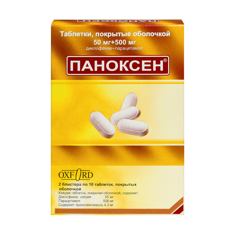 Паноксен 50 мг+500 мг таблетки покрытые оболочкой 20 шт
