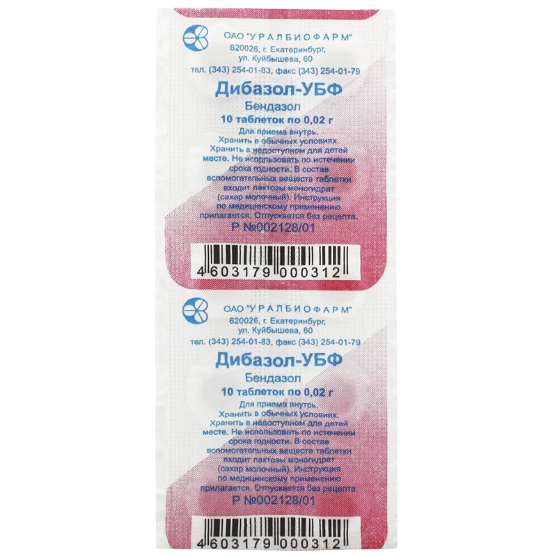 | бендазола гидрохлорид | 30 мг |