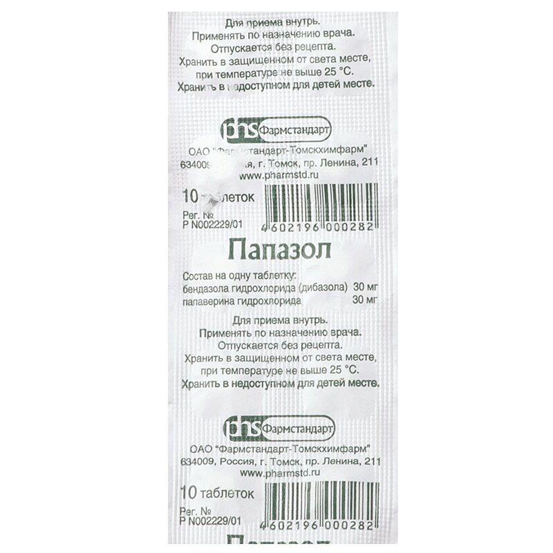 Папазол 30 мг+30 мг таблетки 10 шт Фармстандарт