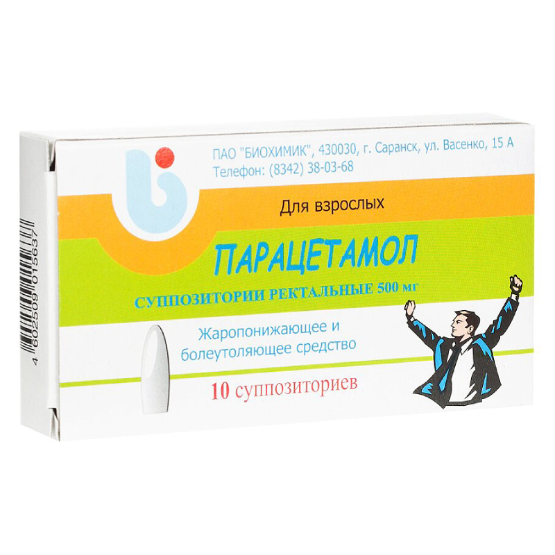 Парацетамол 500 мг суппозитории ректальные 10 шт Биохимик