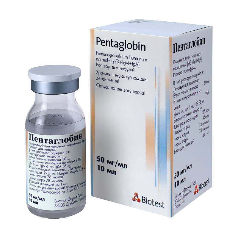 Пентаглобин 50 мг/мл раствор для внутривенного введения 10 мл 1 шт
