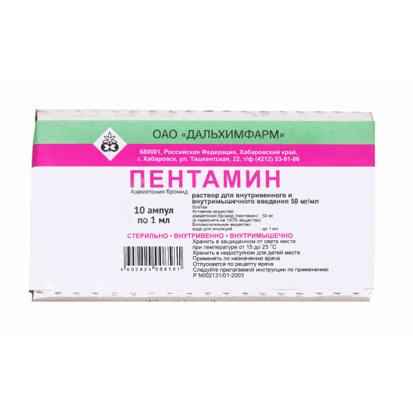 Пентамин 50 мг/мл раствор для внутривенного и внутримышечного введения ампула 1 мл 10 шт