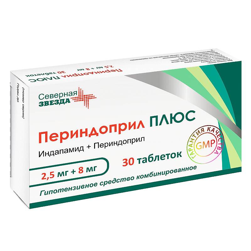 Цены на Периндоприл ПЛЮС 2,5 мг+8 мг таблетки 30 шт в аптеках Москвы