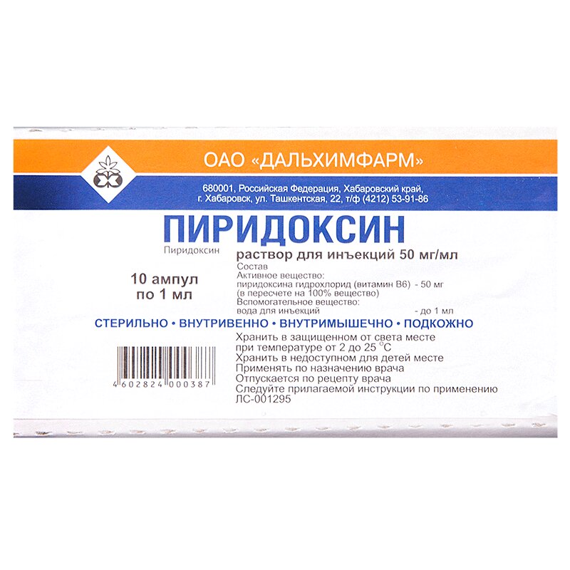 Инструкция по применению Пиридоксин раствор 50 мг/ мл амп.1 мл 10 шт