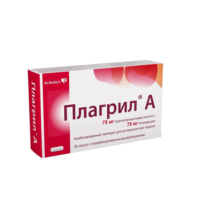 Инструкция по применению Плагрил А 75 мг+75 мг капсулы с модифицированным высвобождением 30 шт