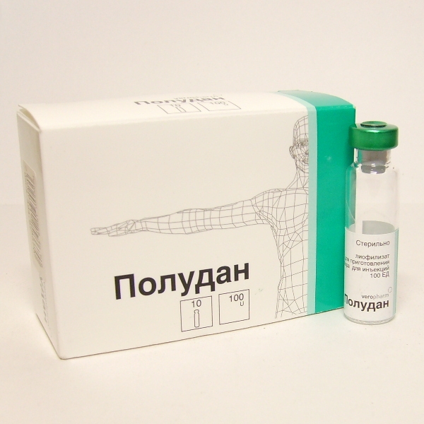 Инструкция по применению Полудан лиоф. д/раствор 100 ЕД фл. 5 мл 10 шт