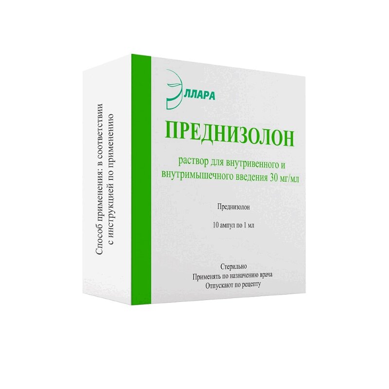 Преднизолон 30 мг/мл раствор для внутривенного и внутримышечного введения ампула 1 мл 10 шт Эллара