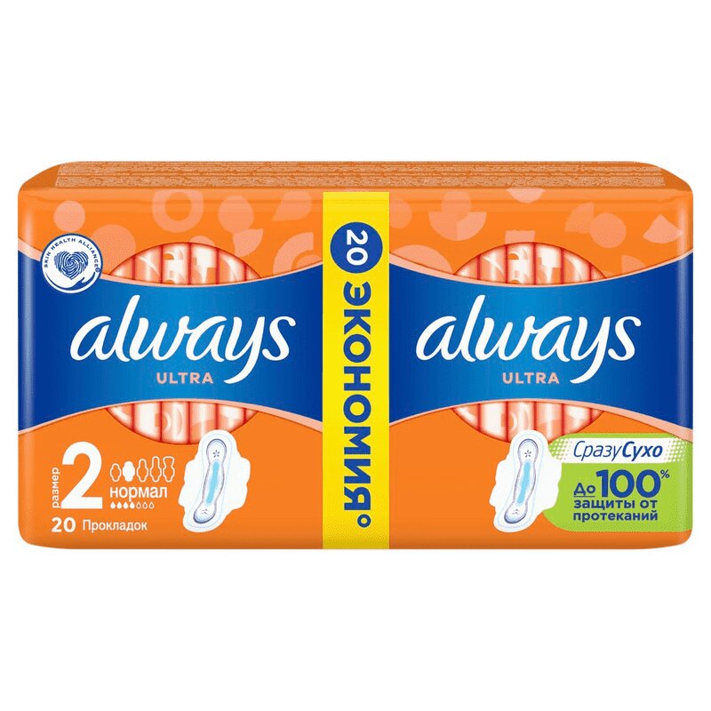 Цены на Always Незаметная защита Прокладки ежедневные ароматизированные Нормал 20 шт в аптеках Москвы