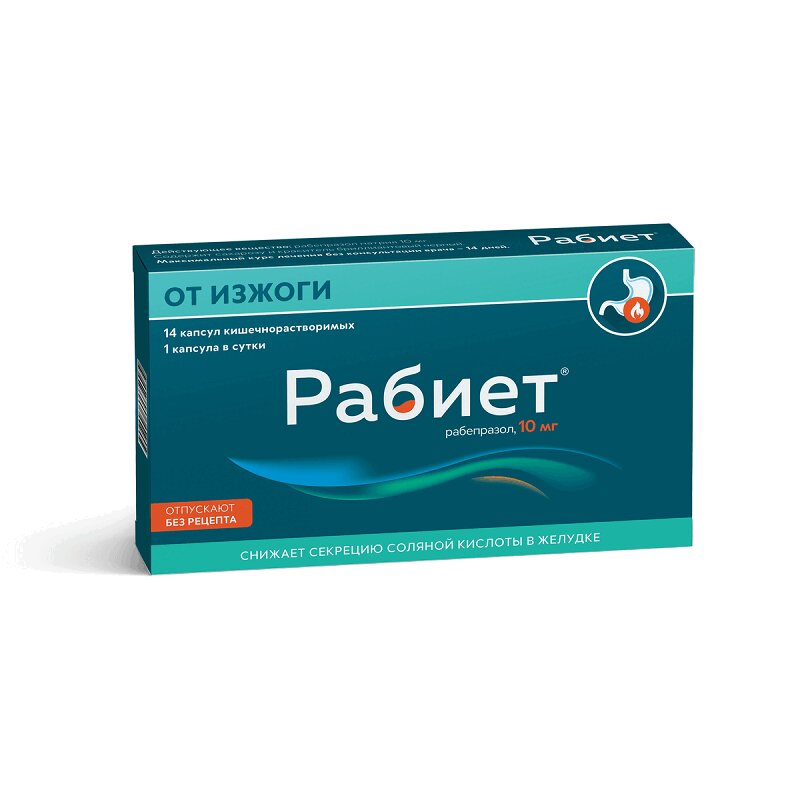 Рабиет 10 мг капсулы кишечнорастворимые 14 шт