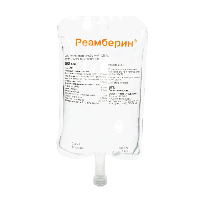 Инструкция по применению Реамберин 1,5% раствор для инфузий 400 мл