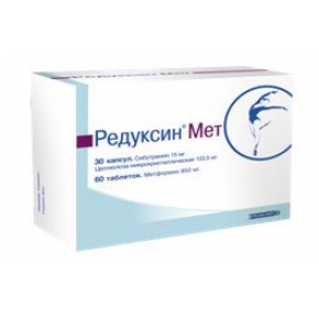 Редуксин® Мет содержит два отдельных лекарственных средства в одной упаковке: гипогликемическое средство для перорального применения группы бигуанидов в лекарственной форме таблетки - метформин, и средство для лечения ожирения в лекарственной форме капсулы, содержащее в своем составе сибутрамин и целлюлозу микрокристаллическую.