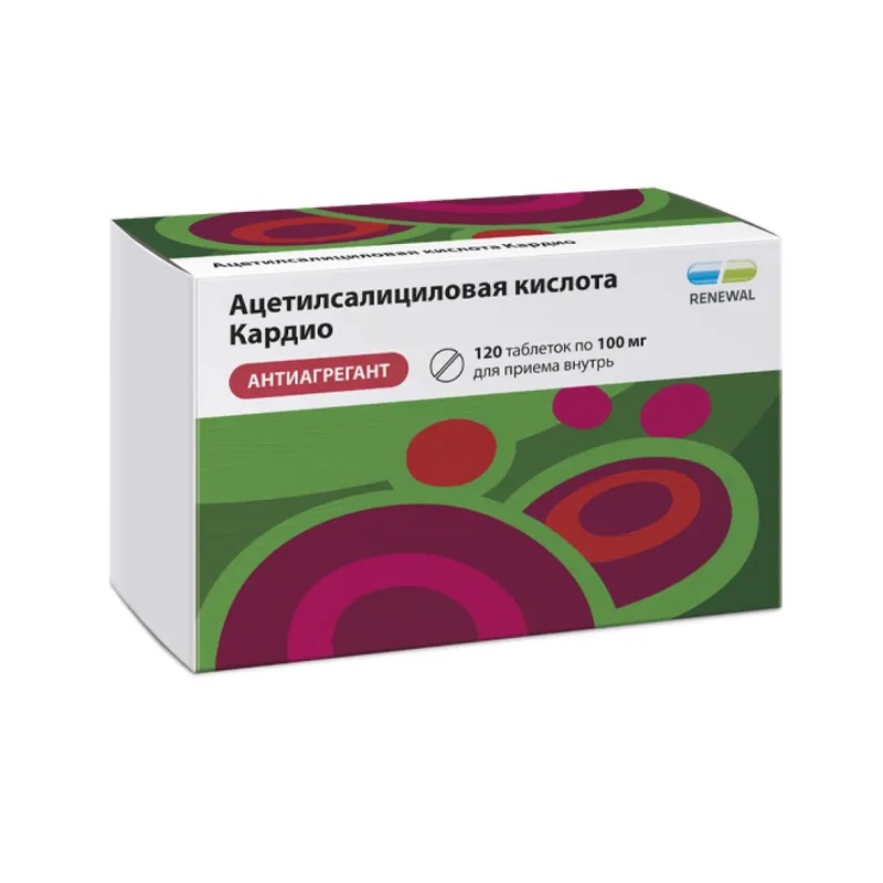 Ацетилсалициловая кислота Кардио 100 мг таблетки кишечнорастворимые покрытые пленочной оболочкой 120 шт Реневал