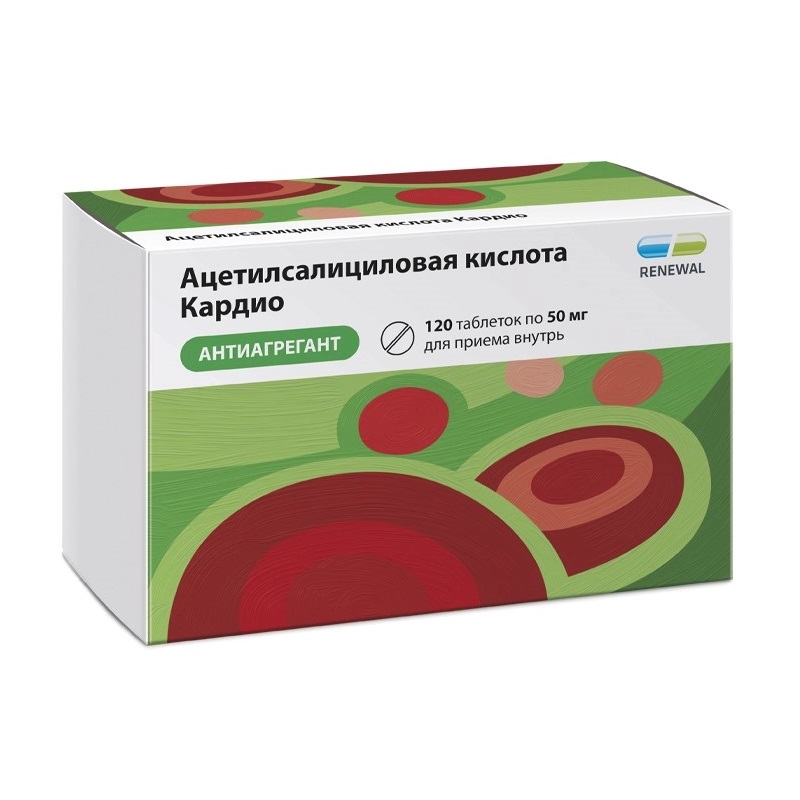 Ацетилсалициловая кислота Кардио 50 мг таблетки кишечнорастворимые покрытые пленочной оболочкой 30 шт Реневал