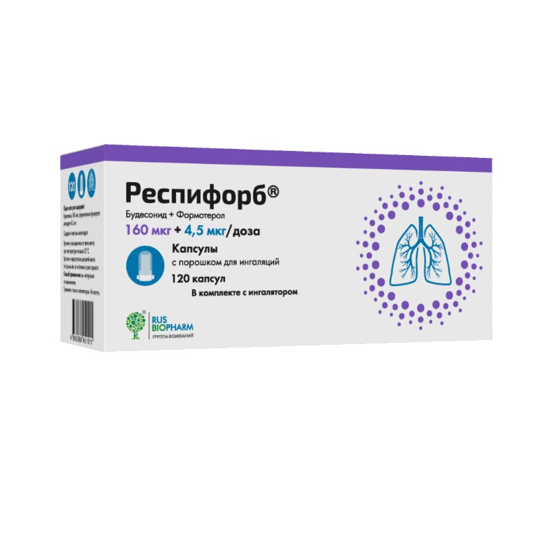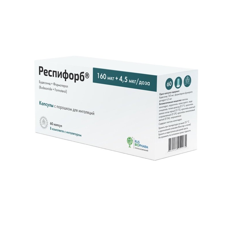Респифорб 160 мкг/доза+4,5 мкг/доза капсулы с порошком для ингаляций 60 шт + устройство для ингаляций