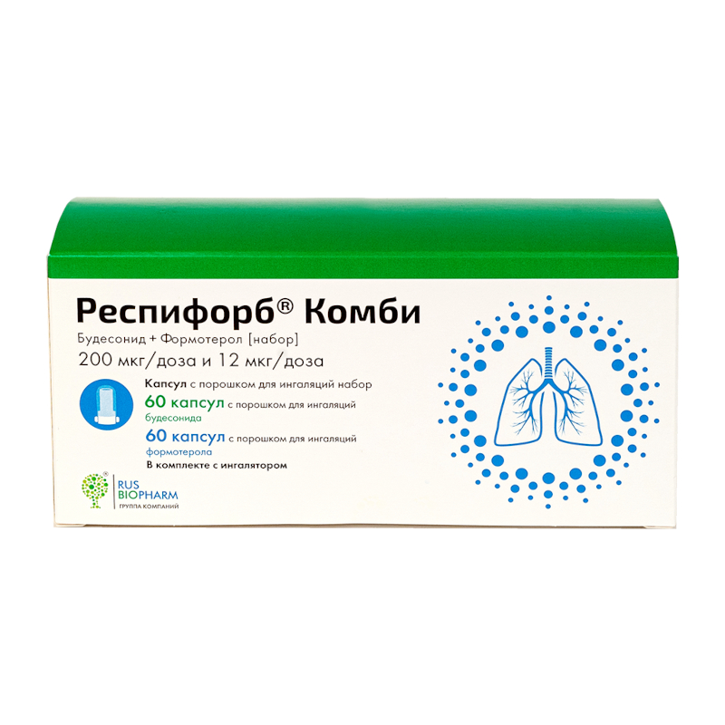 Респифорб Комби 200 мкг/доза+12 мкг/доза капсулы с порошком для ингаляций 60 шт + 60 шт + устройство для ингаляций