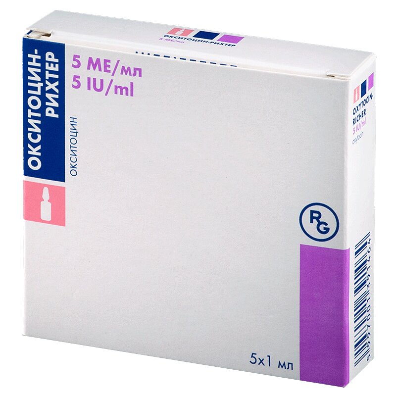 Окситоцин-Рихтер 5 МЕ/мл раствор для внутривенного и внутримышечного введения ампула 1 мл 5 шт