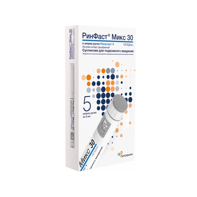 Инструкция по применению РинФаст Микс 30 суспензия 100ЕД/ мл картр.в шпр.-ручк.3 мл 5 шт