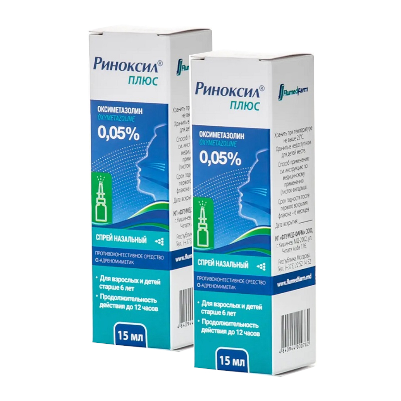 Инструкция по применению Набор 2Х Риноксил Плюс 0,05% спрей назальный 15 мл