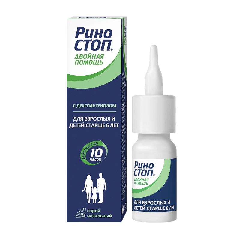 Инструкция по применению Риностоп Двойная помощь 0,1 мг/доза+5 мг/доза спрей назальный 15 мл