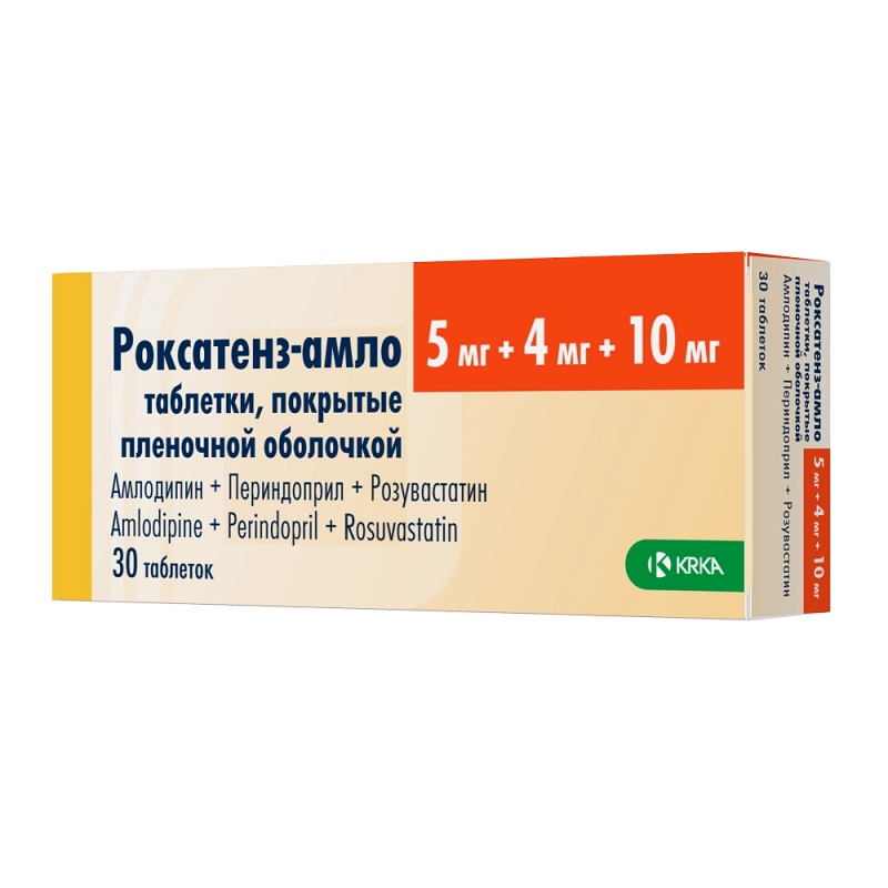 Инструкция по применению Роксатенз-амло 10 мг+8 мг+20 мг таблетки 30 шт