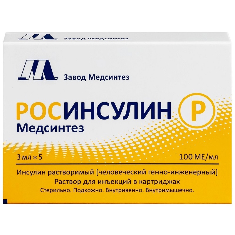 Инструкция по применению Росинсулин Р Медсинтез 100 МЕ/мл раствор для инъекций картридж в шприц-ручке 3 мл 5 шт