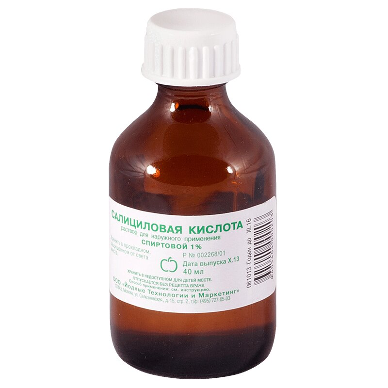 Инструкция по применению Салициловая кислота 1% раствор спиртовой для наружного применения 40 мл