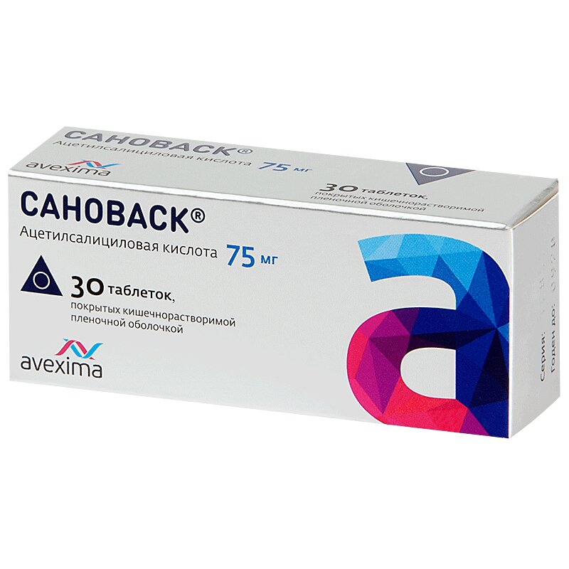 Сановаск таблетки покрытые кишечнорастворимой оболочкой упаковка контурная ячейковая 75 мг 30 шт