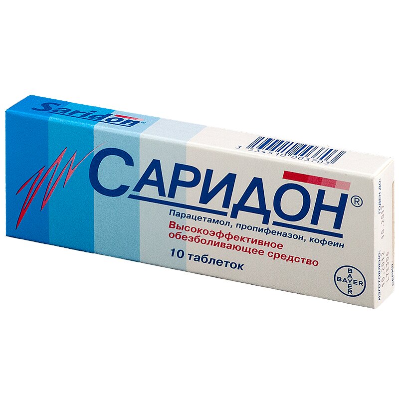 Саридон - комбинированное лекарственное средство, содержащее парацетамол, кофеин и пропифеназон. Парацетамол и пропифеназон оказывают болеутоляющее, жаропонижающее и противовоспалительное действие. Кофеин уменьшает сонливость и чувство усталости, оказывает действие на сердечно-сосудистую систему: увеличивает ЧСС, повышает АД при гипотонии и в данной комбинации усиливает болеутоляющее действие остальных компонентов.