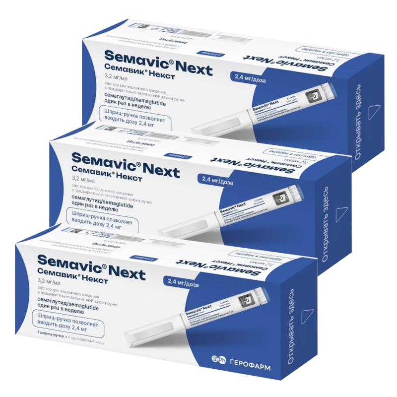 Набор 3Х Семавик Некст 3,2 мг/мл раствор для подкожного введения 2,4 мг/доза шприц-ручка 3 мл + одноразовые иглы 4 шт