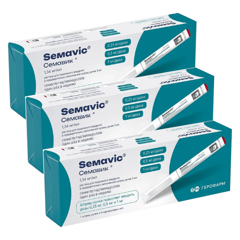 аналоги СемавикЦены на Набор 3Х Семавик 1,34 мг/мл раствор для инъекций 0,25/0,5/1 мг/доза шприц-ручка 3 мл + иглы 9 шт в аптеках Москвы
