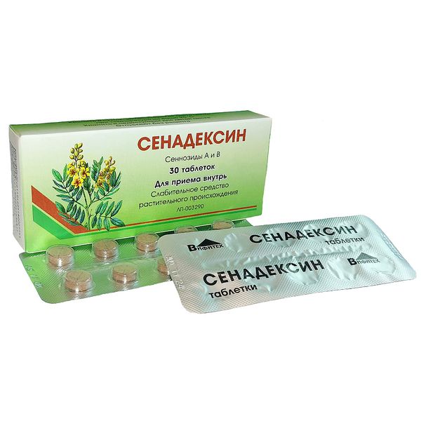Экстракт листьев сенны сухой, крахмал кукурузный, целлюлоза микрокристаллическая (носитель), поливинилполипирролидон (стабилизатор), тальк (агент антислеживающий), магниевая соль стеариновой кислоты (агент антислеживающий).