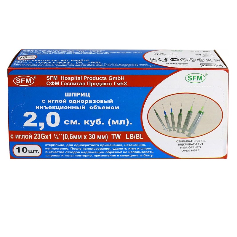 SFM Шприц инсулиновый U-40 1 мл с иглой 29G (0,33 мм х 12,7 мм) 10 шт