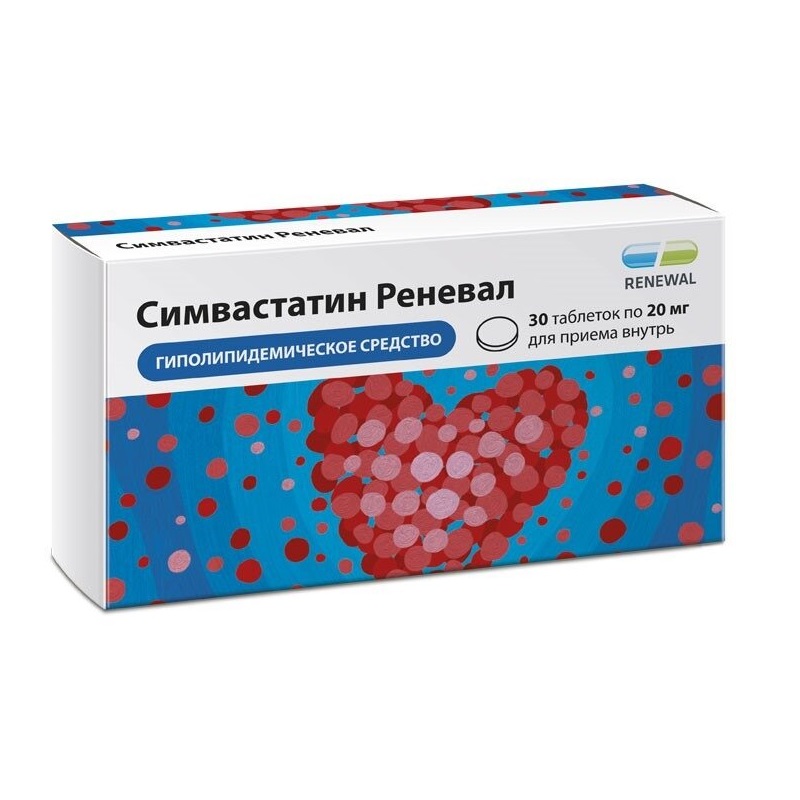 Инструкция по применению Симвастатин Реневал 20 мг таблетки 30 шт